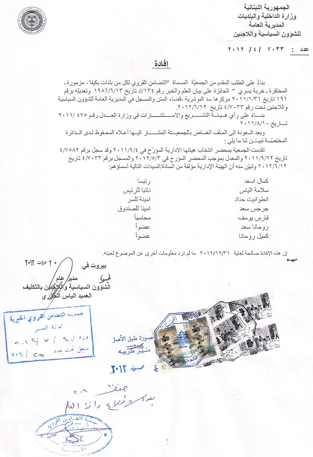 جمعية التضامن القروي الخيرية مراسلات وزارة الداخلية والبلديات